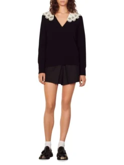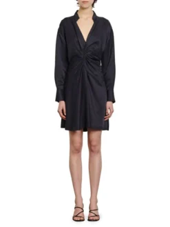 A double-high waist flatters the silhouette of these distressed, relaxed-fit jean shorts.