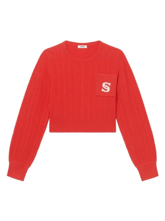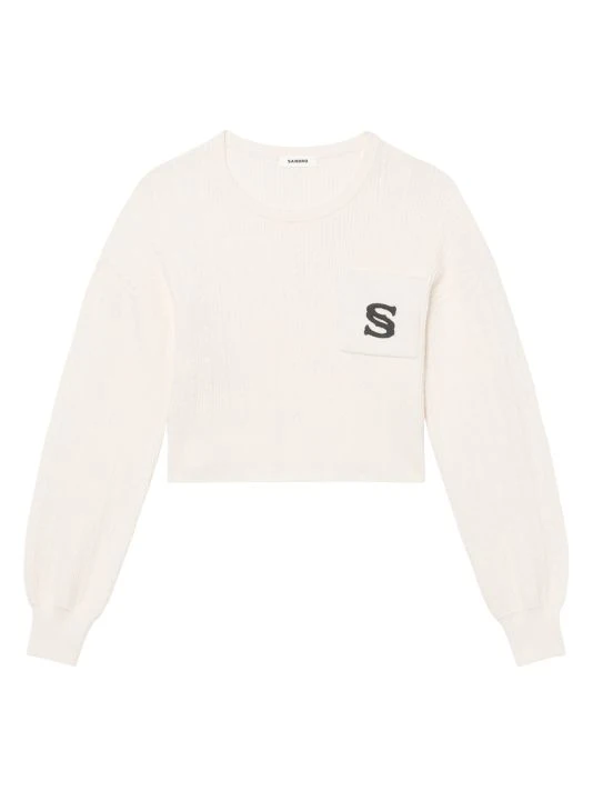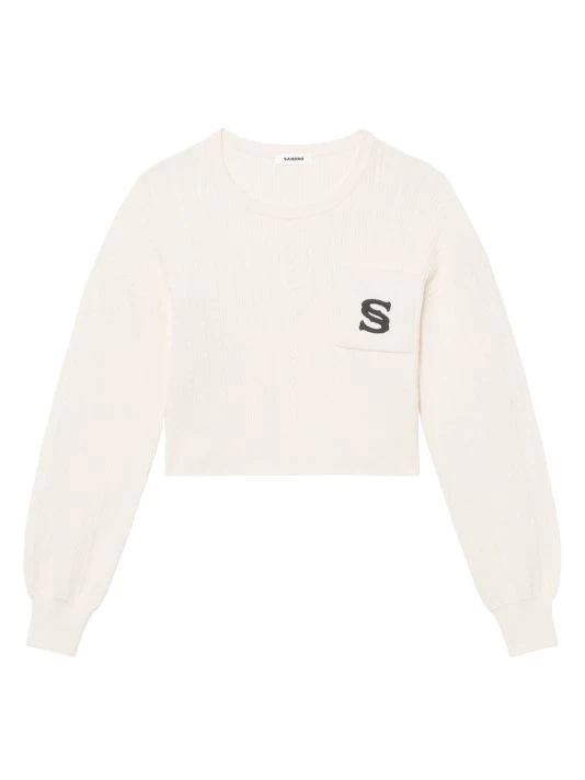 Ribbing shapes this cropped sweater, designed with an embroidered logo pocket.