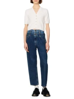 Sandro Nolan Ribbed Star Button Cardigan Off White